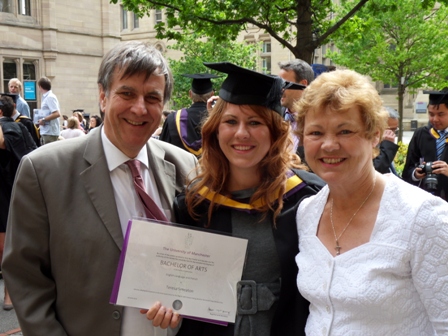 My wife, Josephine, and I were in Manchester for our daughter Teresa's graduation ceremony. She was awarded a joint honours degree in French and English. We are pictured outside the Whitworth Hall at the university of Manchester where the conferment of degrees took place.
